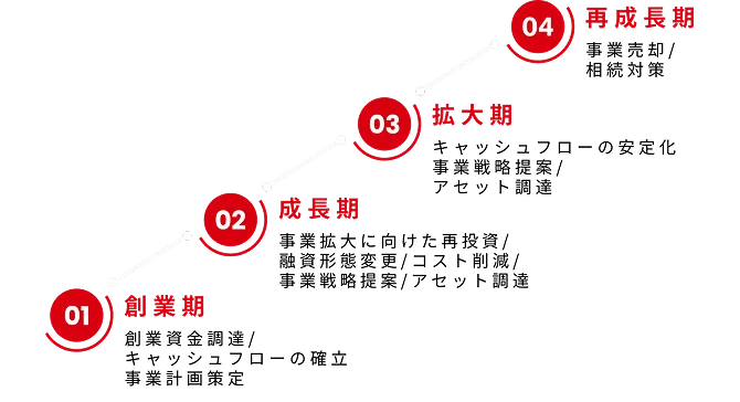 私たちは、調達手段の選定から資本政策の立案、金融機関交渉までを一貫支援。